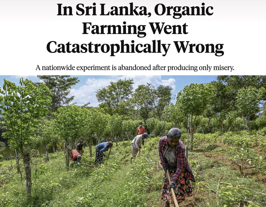 श्रीलंकेने गेल्या वर्षी आपल्या नागरिकांवर एक वाईट प्रयोग केला. सेंद्रिय अन्न आणि जीएमओ विरोधी कार्यकर्त्यांच्या प्रभावाखाली, सरकारने कृत्रिम कीटकनाशकांच्या आयातीवर बंदी घातली आणि देशाला पूर्णपणे सेंद्रिय शेतीकडे वळवण्यास भाग पाडले, ज्यामुळे बहुसंख्य शेतकऱ्यांना त्या महत्त्वाच्या साधनांपासून वंचित राहावे लागले ज्यांचा वापर करून ते देशाला आवश्यक असलेल्या पिकांची लागवड करतात.